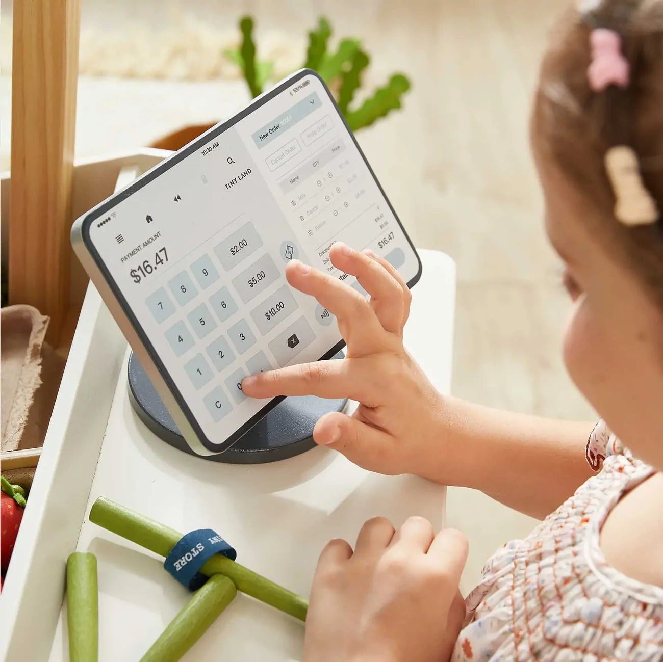 Entra nel mondo del gioco simbolico, dove i piccoli negozianti gestiscono il loro negozio, stabiliscono i prezzi e battono gli scontrini—il tutto mentre imparano abilità fondamentali per la vita quotidiana.