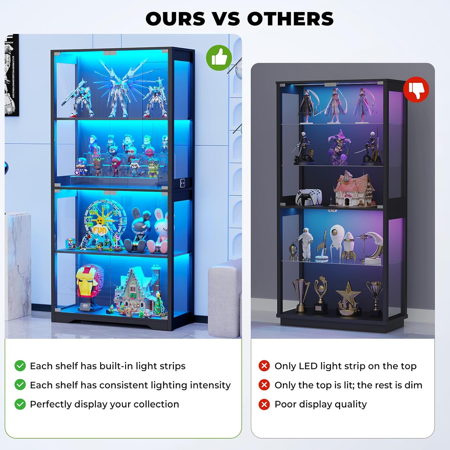 【Luci LED a 3 Colori】La vetrina è dotata di luci LED a 3 colori che aggiungono un tocco moderno al tuo spazio abitativo e permettono di mettere in risalto gli oggetti anche al buio. I tre colori disponibili sono: luce bianca, luce calda e luce blu, con luminosità regolabile.